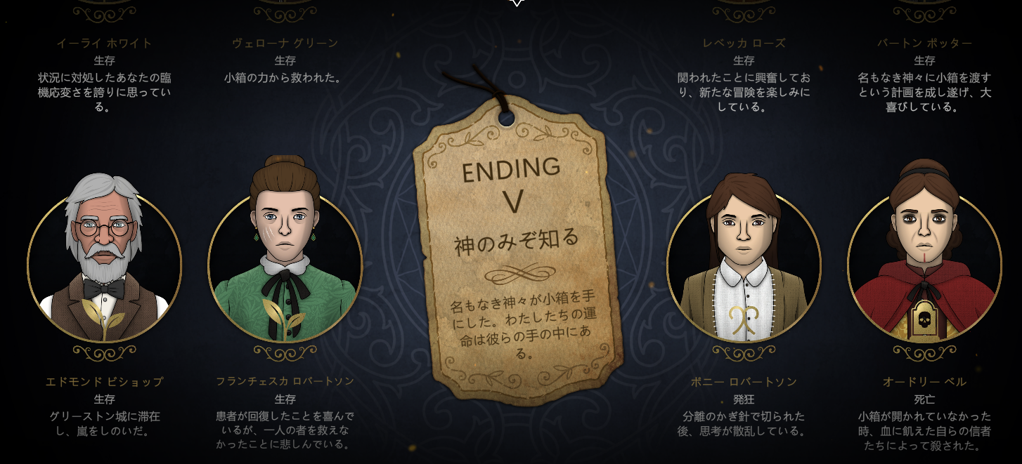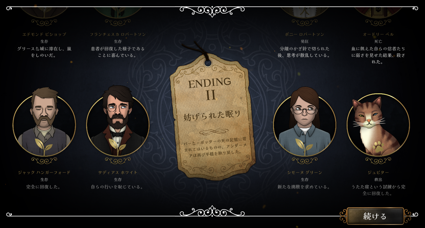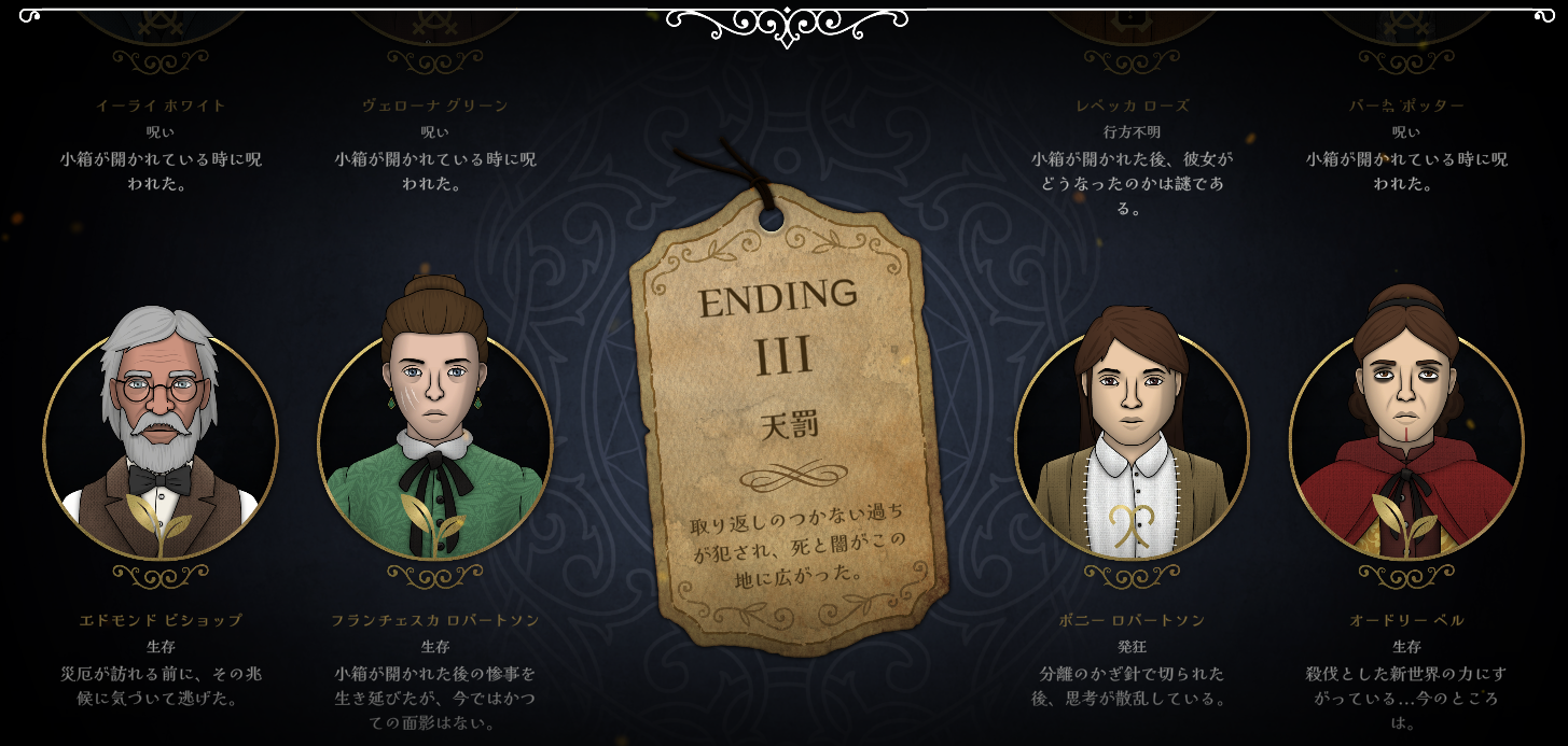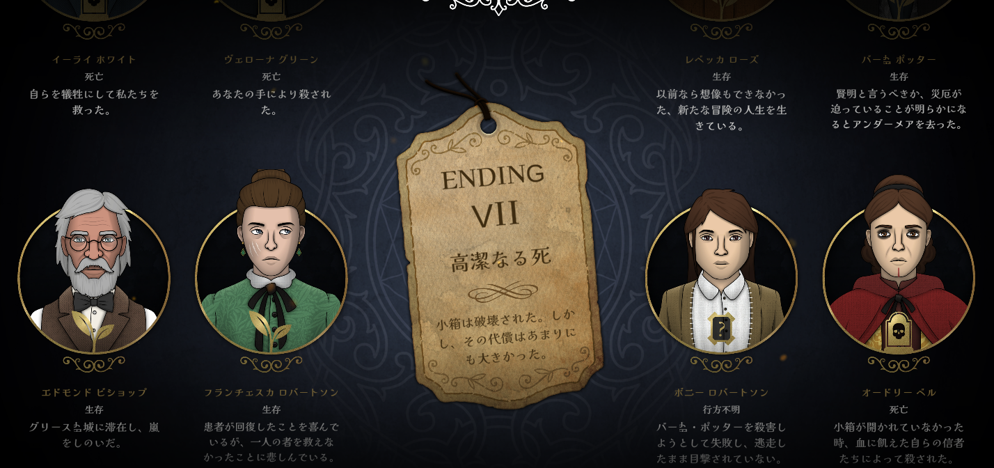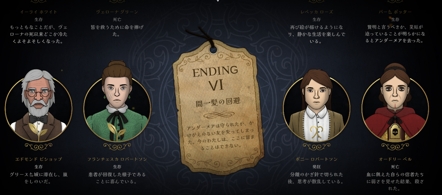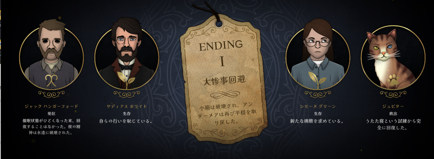 (客観的に見て安全/平穏そうなENDは、ゲーム内のストーリー的に「面白くない」ものだったりするので、何が「良い」とは言い難い感じですね^^)