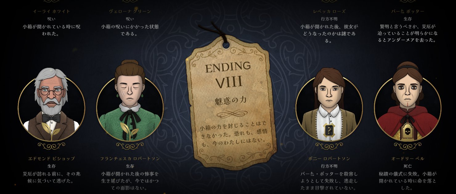 分岐条件が大変参考になりました、ありがとうございます。9番目のエンディングはこちらのヒントがなければまずたどり着けないところでした……。アイテム自体は前作の経験があったので「なんか本作に出てこないはずのアイテム名があるな?」→「あったわ」ってなりました。